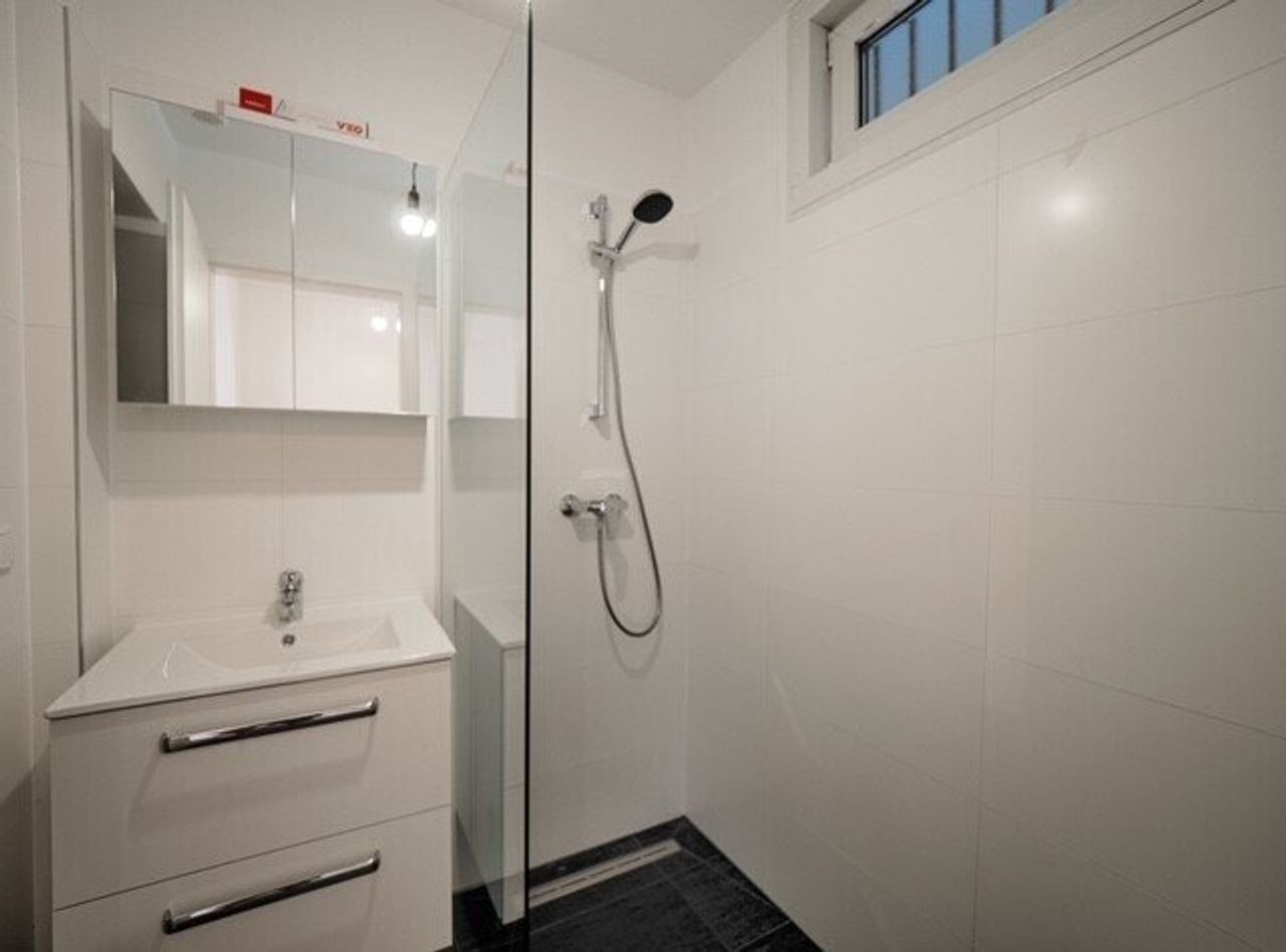 - Badezimmer: Modernes Badezimmer ausgestattet mit Dusche und Waschmaschinenanschluss.