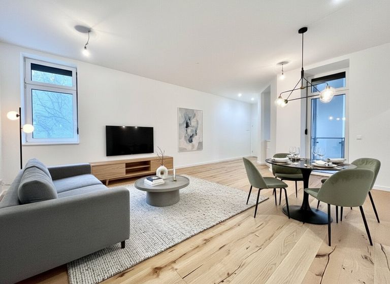 1 helles Wohn/Esszimmer (wo sich der Ausgang zum hofseitigen Balkon befindet)