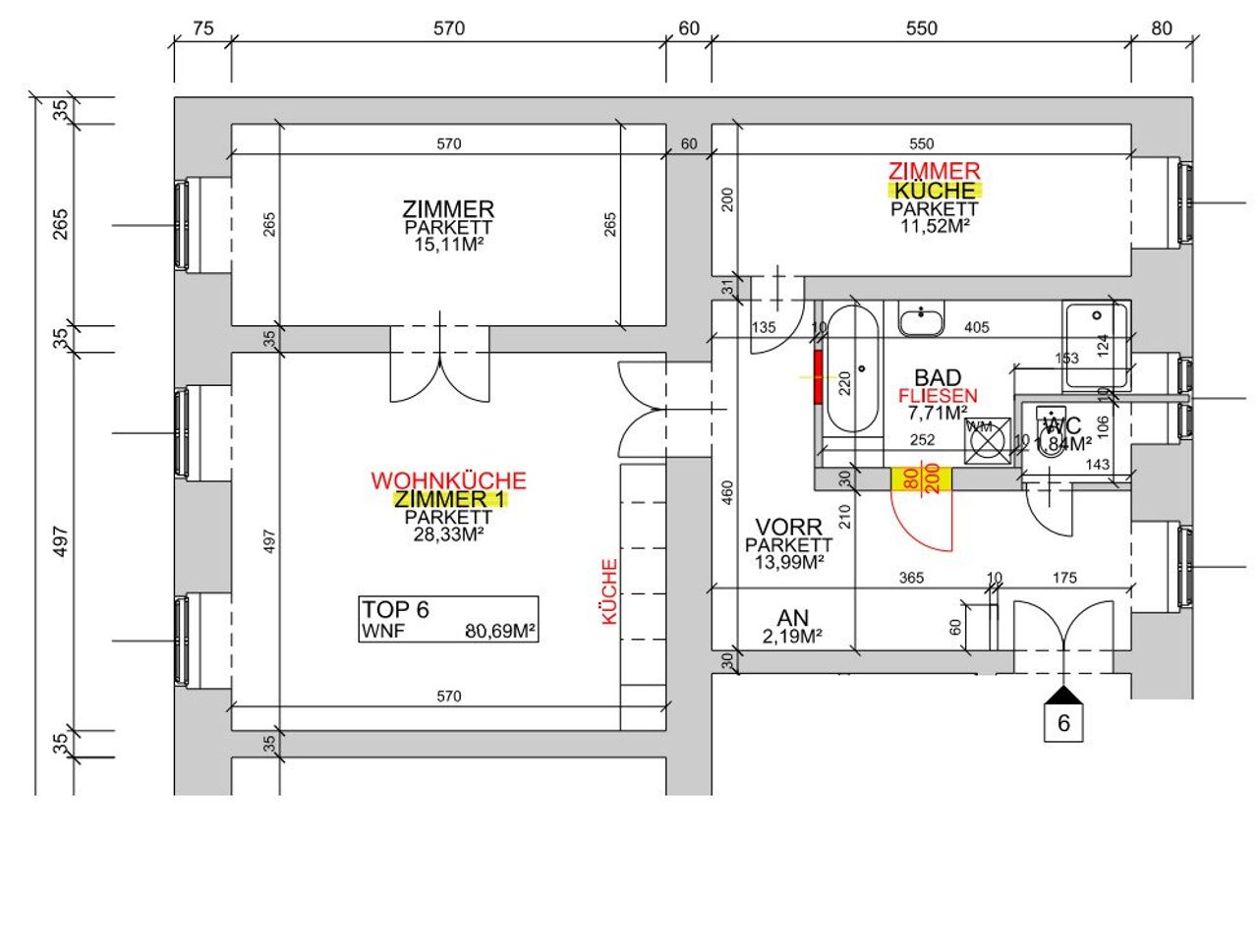 Räumlichkeiten (ca. 81m²):