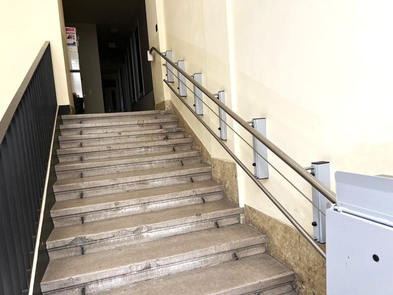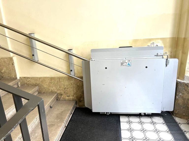 Barrierefrei: Der Halbstock-Stiegenaufgang im Eingangsbereich des Wohnhauses verfügt über einen Rollstuhllift.