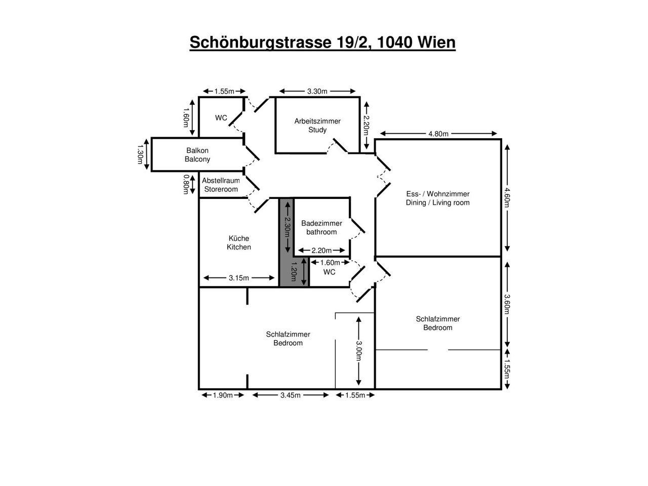 1 Kabinett (Schlafzimmer) mit Fenster zum Vorraum