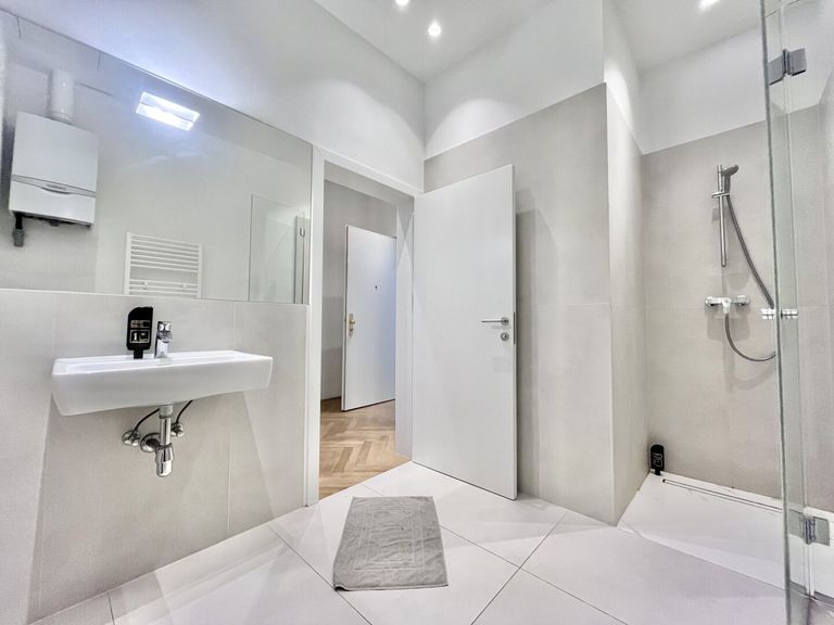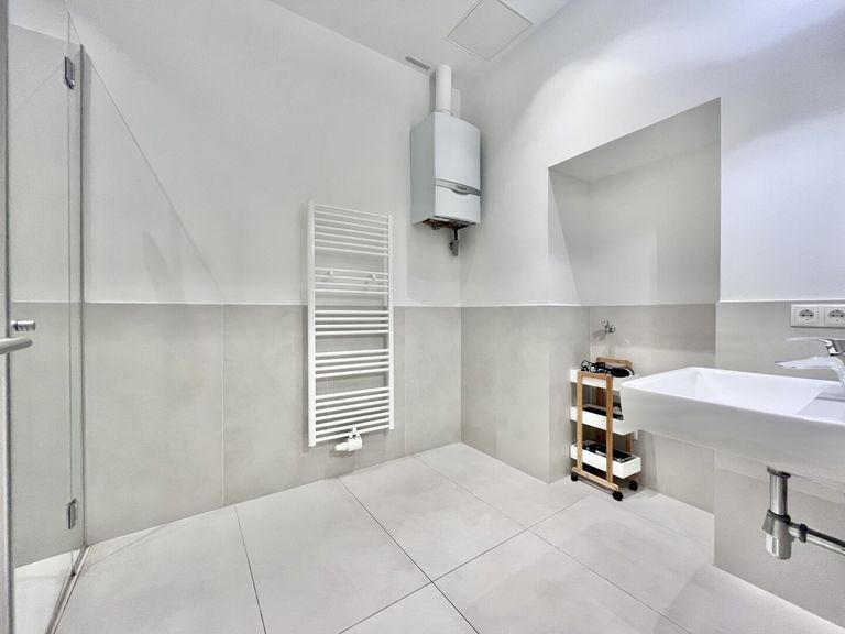 1 separat begehbares Badezimmer inkl. Dusche, Handwaschbecken und Waschmaschinenanschluss