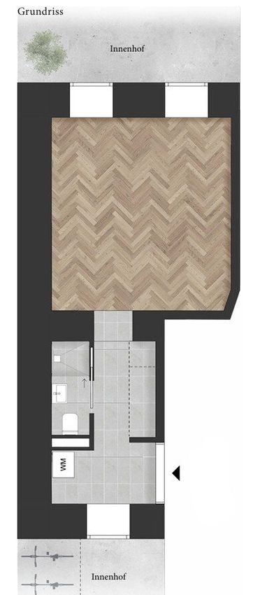 - Vorraum mit integrierter Küche und Waschmaschinenanschluss