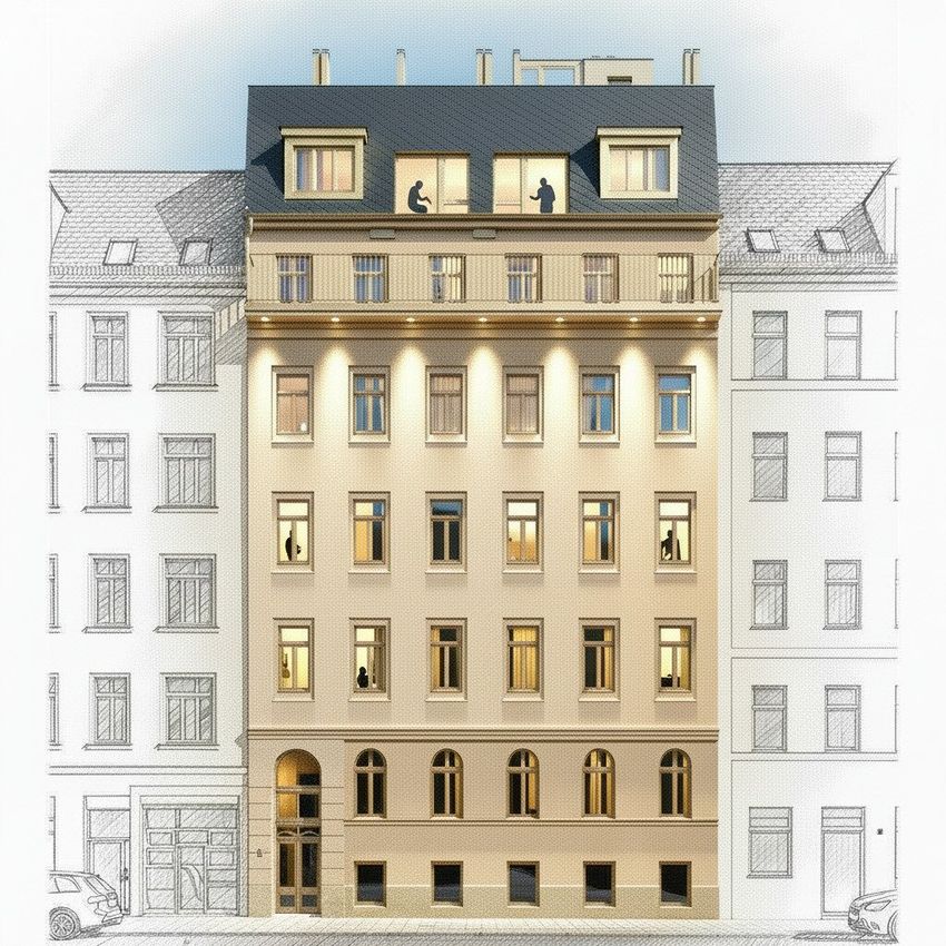 Das Objekt befindet sich im 3. Stock eines außergewöhnlich schönen Altbaus welcher soeben saniert wird. Das Dachgeschoss wird ebenfallsausgebaut und im Zuge dessen wird ein Personenaufzug eingebaut. Fertigstellung Q1 2027.