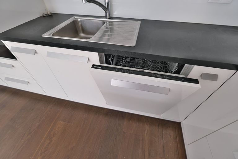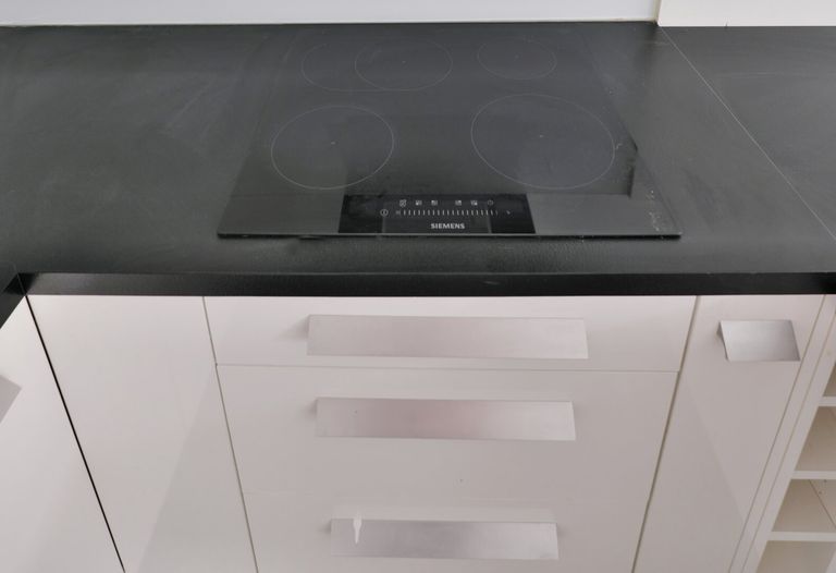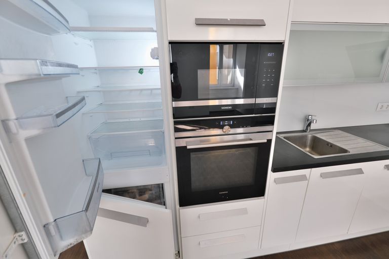 Eine Qualitäts-Küche ist mit SIEMENS-Geräten ausgestattet: Backofen, Mikrowelle, Dunstabzugshaube, 4er-Ceranfeldherd, Kühlschrankkombination mit Gefrierschrank.