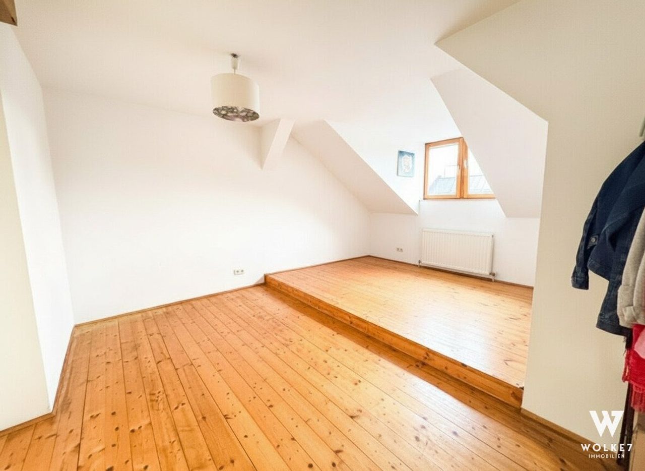 Diese besondere Maisonette vereint klassischen Altbaucharakter mit großzügigem Dachgeschoßambiente. Die Wohnung umfasst ca. 175 m² Wohnfläche – ca. 59 m² im 3. Stock (Top 8) sowie ca. 115 m² im ausgebauten Dachgeschoß (Top 10) – verbunden durch eine Wendeltreppe im Vorzimmer.