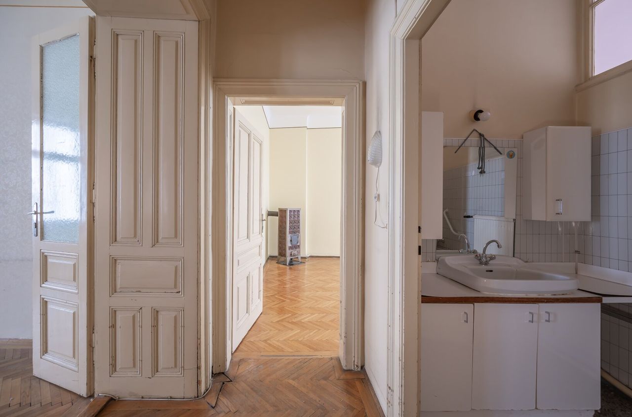 The apartment is located on the 2nd floor (no elevator) and requires renovation. It preserves charming elements of a Viennese period building: