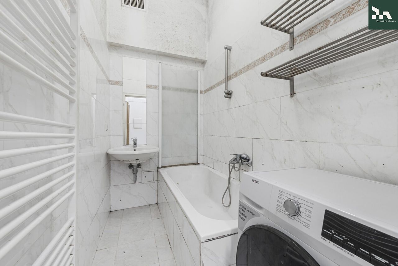 Die separate Küche bietet funktionale Gestaltungsmöglichkeiten, das Badezimmer ist mit einer Badewanne ausgestattet, das WC ist separat begehbar. Beheizt wird die Wohnung mittels einer Gasetagenheizung. Die Wohnung befindet sich im Hochparterre. Ein eigenes Kellerabteil ist zugeordnet, Fahrradabstellmöglichkeiten stehen im Innenhof zur Verfügung.