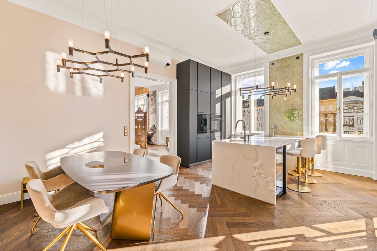 Diese renovierte Altbauresidenz bietet auf rund ca. 167 m² ein Wohnkonzept, das Wiener Eleganz mit modernem Designanspruch verbindet – großzügig in den Proportionen, präzise in der Ausführung und stimmig bis ins Detail.