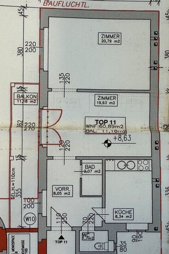 Die 2-Zimmer-Wohnung erstreckt sich auf ca. 61m² + ca. 12m² Balkon und gliedert sich wie folgt: