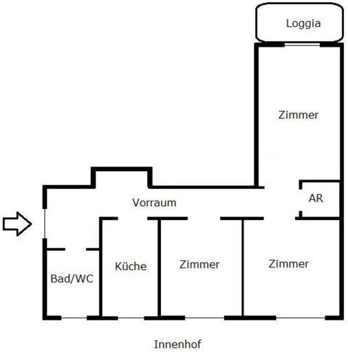 Die Wohnung befindet sich in einem generalsanierungsbedürftigen Zustand und eröffnet damit die seltene Gelegenheit, ein Zuhause ganz nach den eigenen Vorstellungen und Ansprüchen zu gestalten. Hier können individuelle Wohnideen verwirklicht werden.