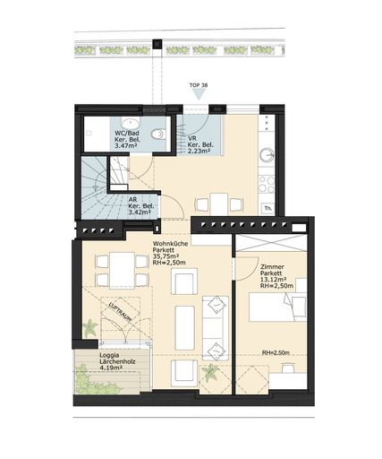 Die Maisonnette Wohnung ist wie folgt aufgeteilt: