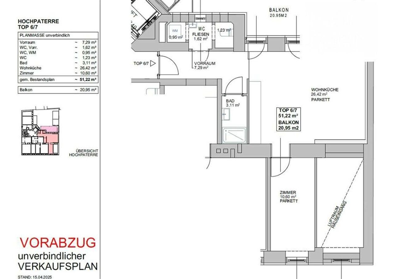 Freiflächen: ca. 5,6–29,3 m², viele mit beeindruckendem Stadtblick