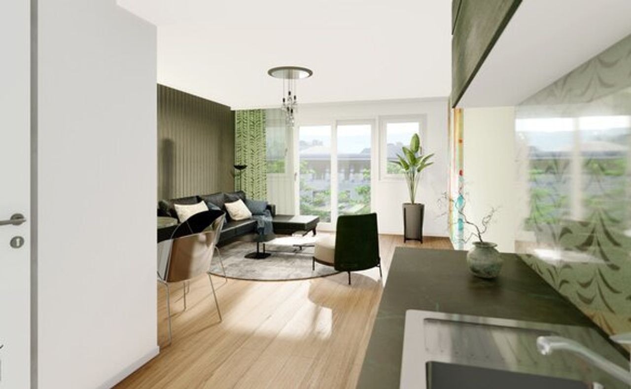 Stilvoll wohnen mit Weitblick Die smart geplanten Wohneinheiten umfassen ca. 35–116 m² Wohnfläche und bieten Freiflächen von ca. 5,60–29,32 m². Ob...