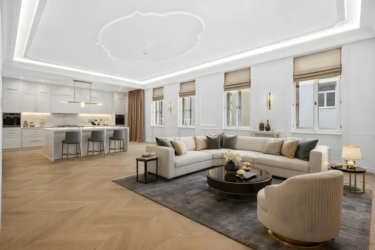 spacious living room with open kitchen