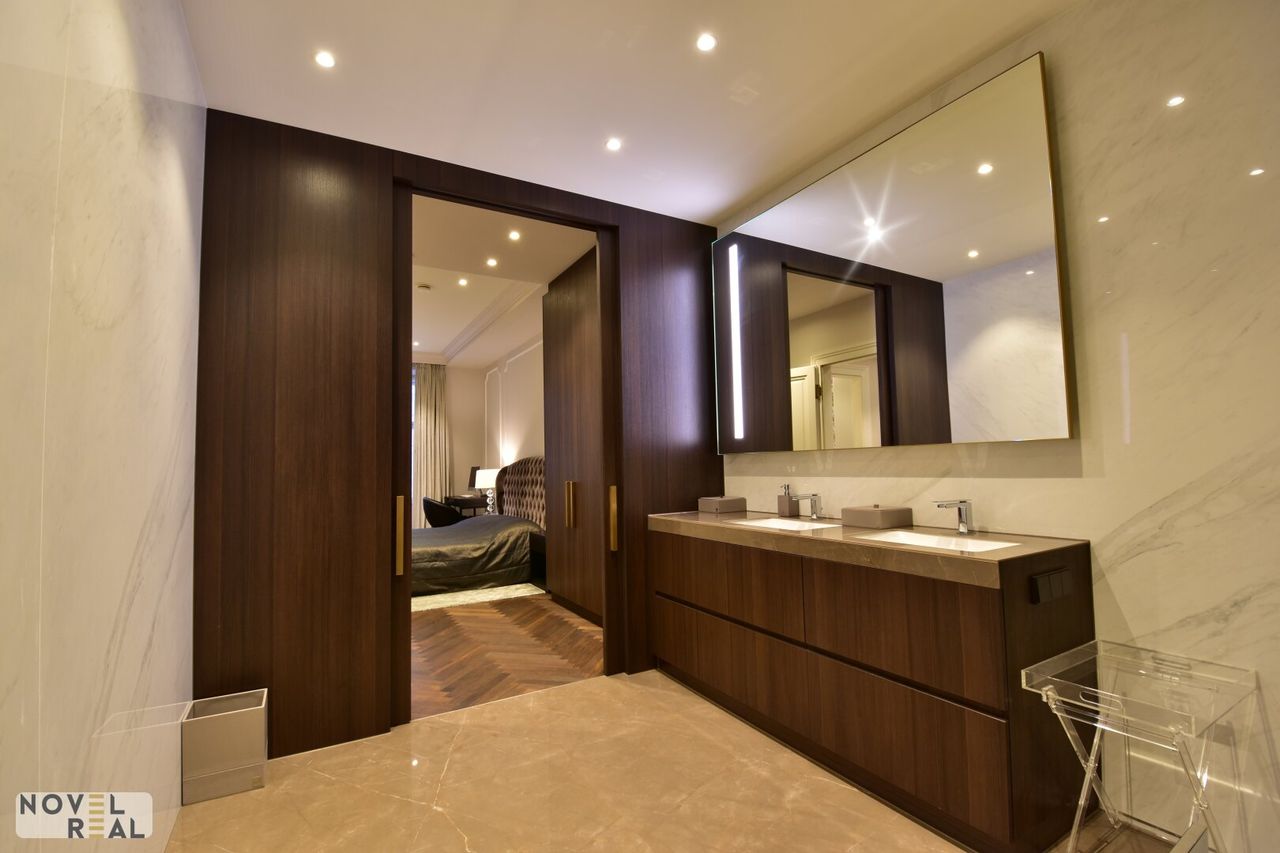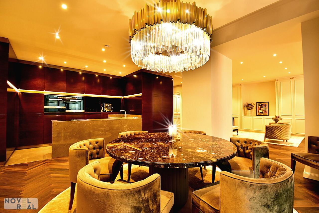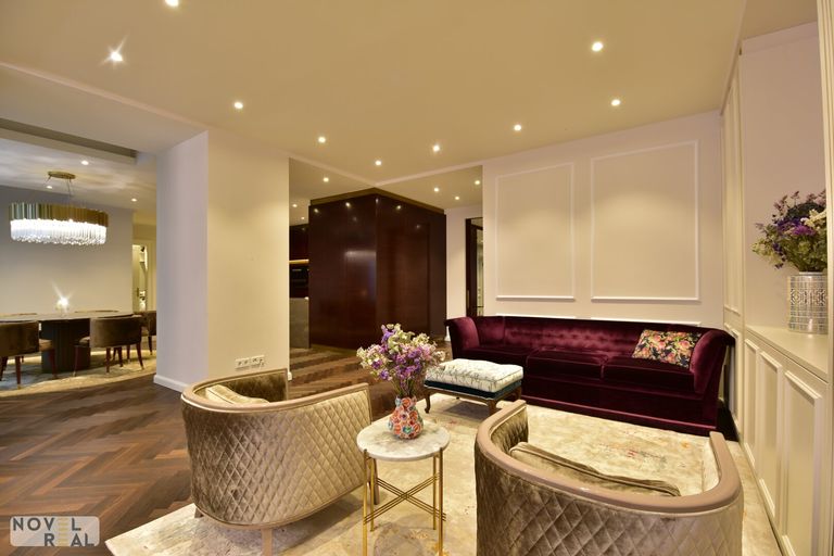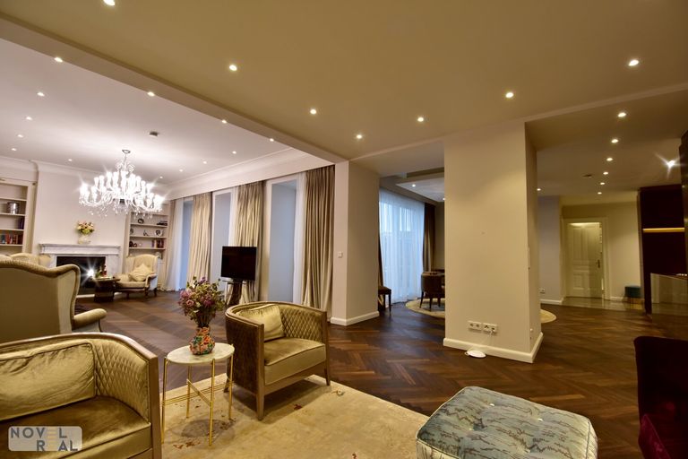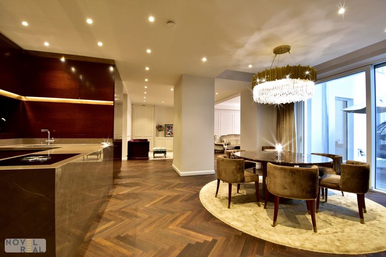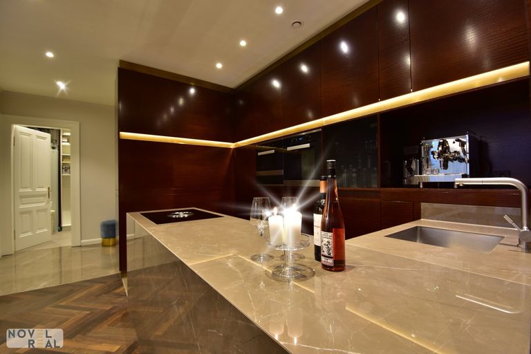 Zur Verkauf gelangt eine bis ins Detail perfekt gestaltete 4 Zimmer Luxuswohnung. Die exklusive 182 m2 große Wohnung besticht durch ihre hohen Räume und eleganten Parkettböden im Fischgrätmuster. Die durchdachte Ausstattung begeistert durch exklusive Technik, edle Materialien und raffinierte Details. Zeitlose Eleganz und Stil eröffnen eine neue Dimension des Wohnens. Die ca. 32 m2 große Terrasse ist mit stilvollen Thermoholzdielen versehen und blickt in den gärtnerisch aufwendig ausgestalteten Innenhof. Wohlige Wärme verbreitet die Fußbodenheizung mit Einzelraumregelung.