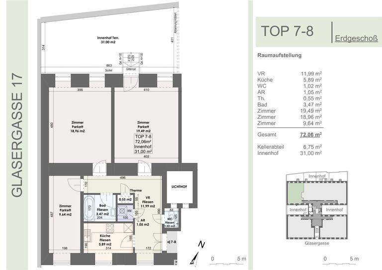 Dieses Wohnungspaket in allerbester Lage des 9. Bezirks besteht aus 4 Wohnungen, die auch schon einmal 6 Wohnungen waren. Also auch eine erneute Teilung wäre möglich. Je nachdem, wie Sie es nutzen wollen. Alle liegen schön ruhig nach innen, zum Hoftrakt, mit einer großzügigen Freifläche zum Innenhof.