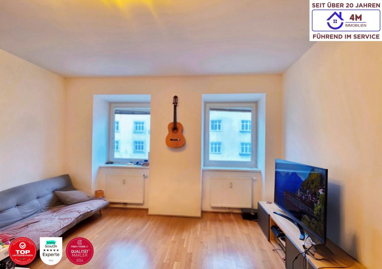 Die Wohnung liegt im 2. Obergeschoss eines klassischen Wiener Altbaus mit Lift. Im Zuge des Dachgeschoßausbaus wurde das Haus umfassend modernisiert (thermische Sanierung, neue Fenster). Dadurch entspricht der Wohnkomfort heute deutlich eher einem Neubau als einem typischen Altbau. Die Wohnung ist dank Lift stufenlos erreichbar und damit barrierefrei zugänglich. Gerade im Alltag mit Einkäufen oder Kinderwagen bedeutet das deutlich mehr Komfort als in klassischen Altbauten ohne Aufzug. Der Wohnbereich orientiert sich zur Straße und wirkt offen und großzügig. Das Schlafzimmer liegt vollständig zum Innenhof getrennt vom Stadtlärm und angenehm ruhig. HIGHLIGHTS UND AUSSTATTUNGSMERKMALE: •Lift & barrierefreier Zugang •thermisch saniertes Haus...