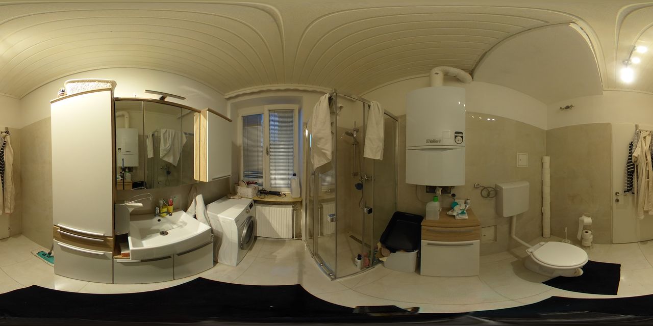 Das Badezimmer verfügt über eine Dusche und beinhaltet auch das WC.