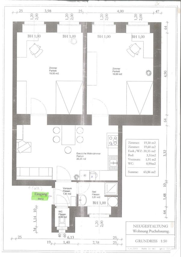 Die Wohnung wurde 2004 umfassend saniert und mehrere Jahre vom Eigentümer selbst genutzt. In den letzten Jahren war sie vermietet und befindet sich aktuell in einem gebrauchsbedingten, etwas abgewohnten Zustand, bietet jedoch eine solide Grundlage für eine Modernisierung nach eigenen Vorstellungen.