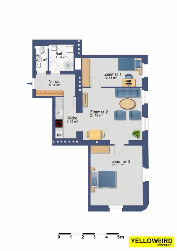 - Zimmer: 2 (23,9m² - 13,7m²)