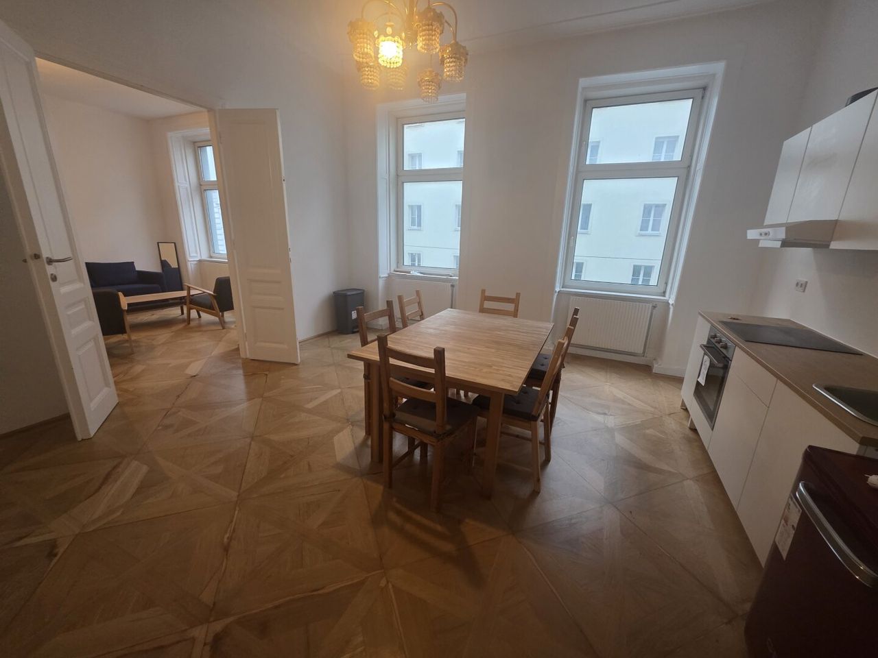 Diese 3,5-Zimmer-Wohnung mit ca. 88 m² hat genau das, was man sich von einem Altbau erwartet: hohe Decken, klassische Flügeltüren und schöne Parkettböden, die den Räumen eine besondere Atmosphäre geben.