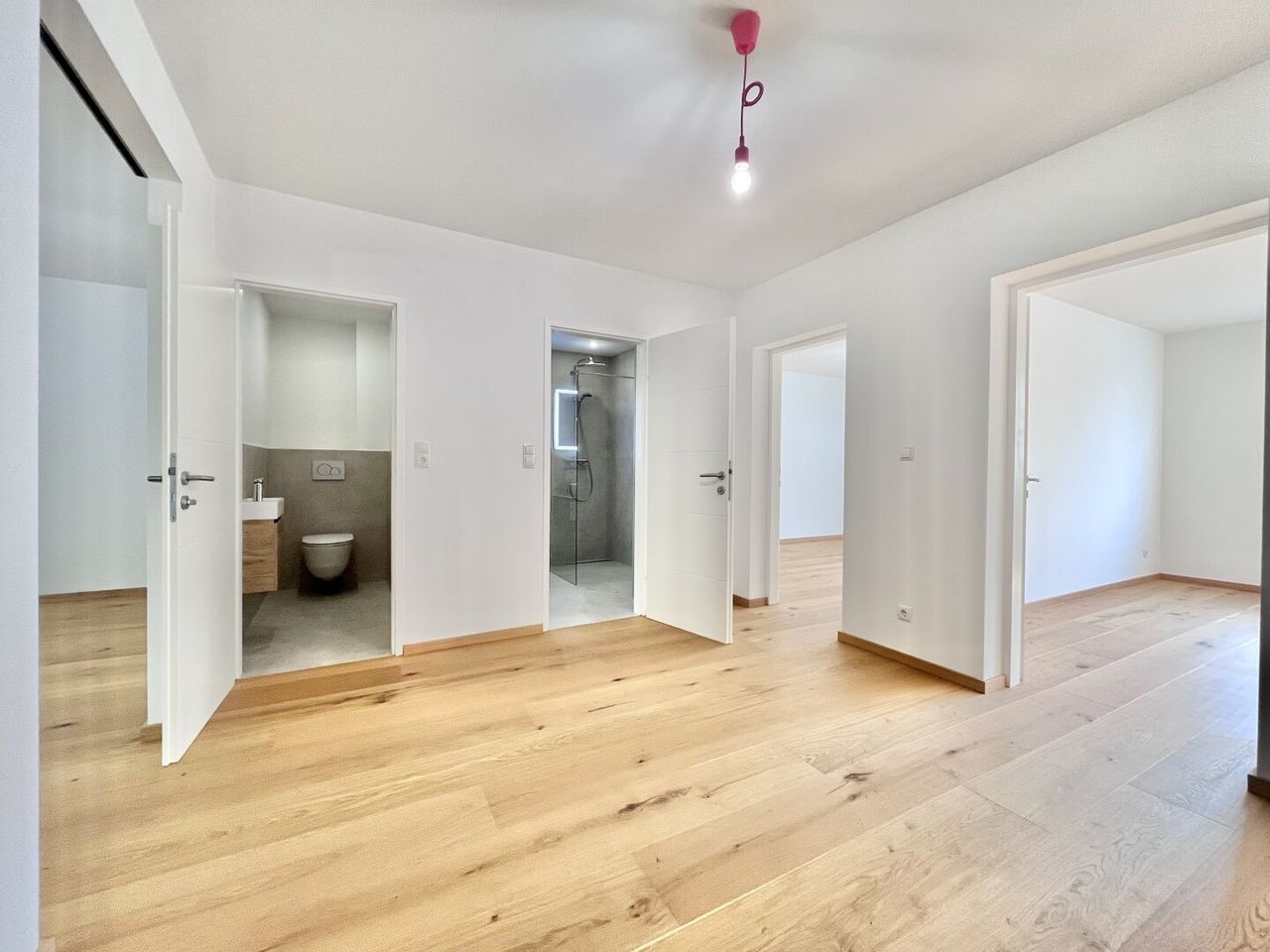 1 separat begehbares Badezimmer inkl. Dusche, Handwaschbecken und Waschmaschinenanschluss