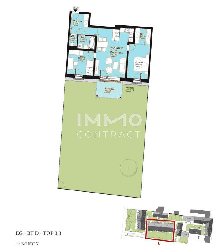 Das Projekt richtet sich an Singles, Paare und Familien, die ein Zuhause mit flexiblem Grundriss, lichtdurchfluteten Räumen und privatem Freiraum suchen. Jede Einheit verfügt über eine eigene Freifläche – Garten, Terrasse, Balkon oder Loggia – und sorgt so für ein Wohnerlebnis mit viel Licht, Luft und Lebensqualität.