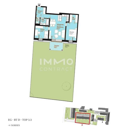 - Private Freiflächen bei allen Einheiten: Gärten, Terrassen, Balkone oder Loggien
