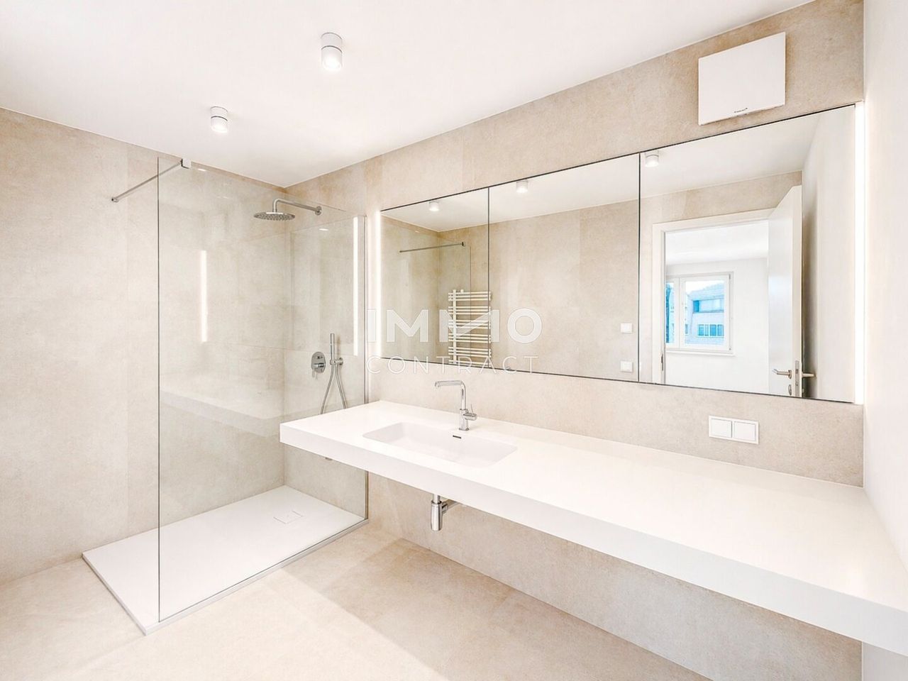 Ein besonderes Augenmerk wurde auf hochwertige Materialien und eine stilvolle Ausführung gelegt. In den Wohnräumen wurden edle Parkettböden verlegt, während die modern gestalteten Badezimmer bereits mit hochwertigen Armaturen, integrierter Beleuchtung, Spots sowie praktischen Spiegelschränken ausgestattet sind und so ein elegantes, zeitloses Ambiente schaffen.