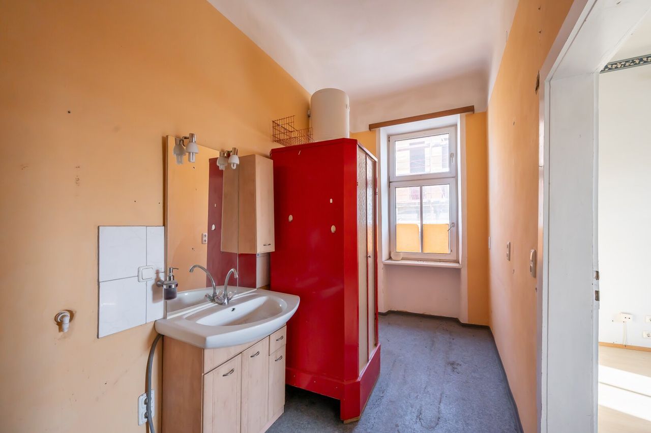 Die Wohnung befindet sich in einem sanierungsbedürftigen Zustand und wird wie sie liegt und steht verkauft.
