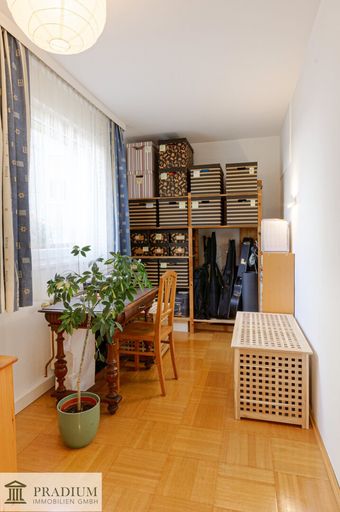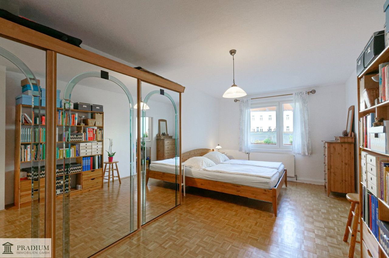 Im zweiten Wohnungsteil befinden sich die Schlafzimmer. Das derzeitige Elternschlafzimmer hat eine beachtliche Größe von über 20m² und ist in den ruhigen Innenhof ausgerichtet. Ein weiteres Zimmer dient derzeit als Hobbyraum, kann aber sehr gut als weiteres Schlafzimmer genutzt werden, da auch dieses Zimmer in den Innenhof ausgerichtet ist.