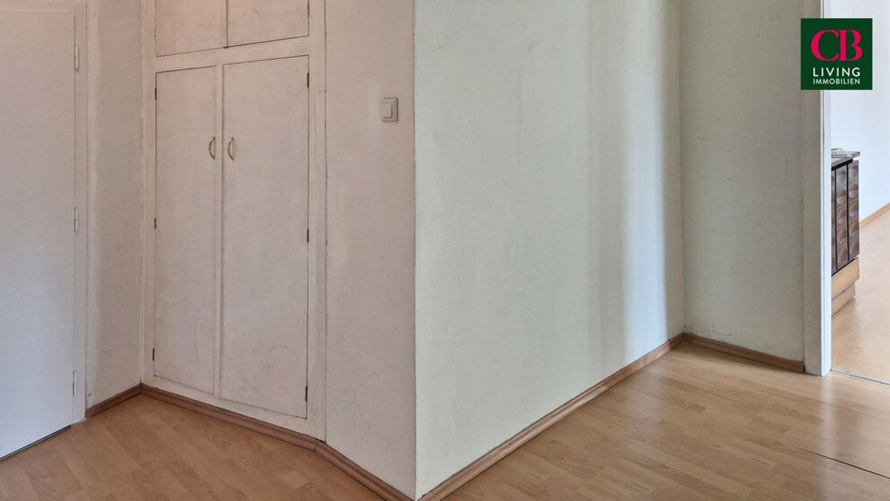 Das sehr geräumige Vorzimmer verfügt über mehrere praktische Einbauten, die zusätzlichen Stauraum ermöglichen.