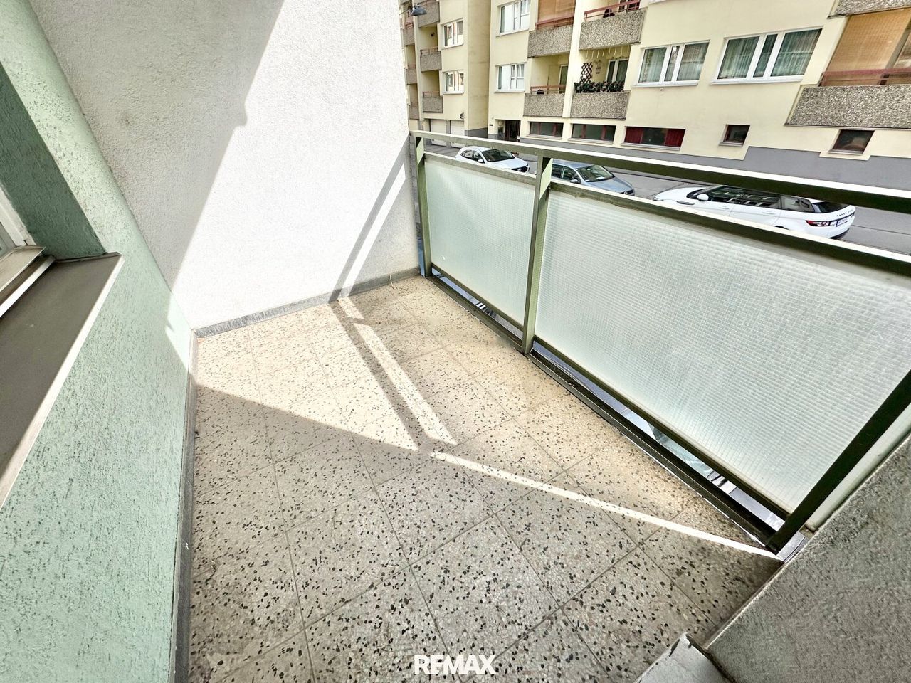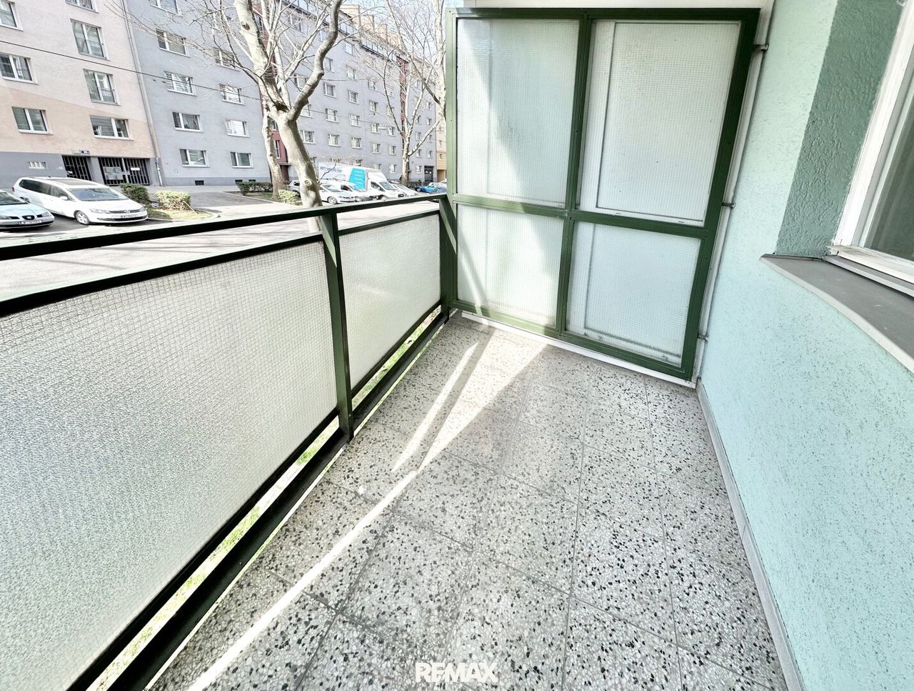 Genießen Sie sonnige Stunden im Freien auf Ihren zwei (!) Loggien, die Sie von zwei der Wohnräume betreten. Sie bieten jeweils Platz z.B. für Tisch und Sessel. Mit Bäumen vor dem Haus, und nicht an einer Hauptstraße, sondern eher wenig befahrenen Seitengasse.