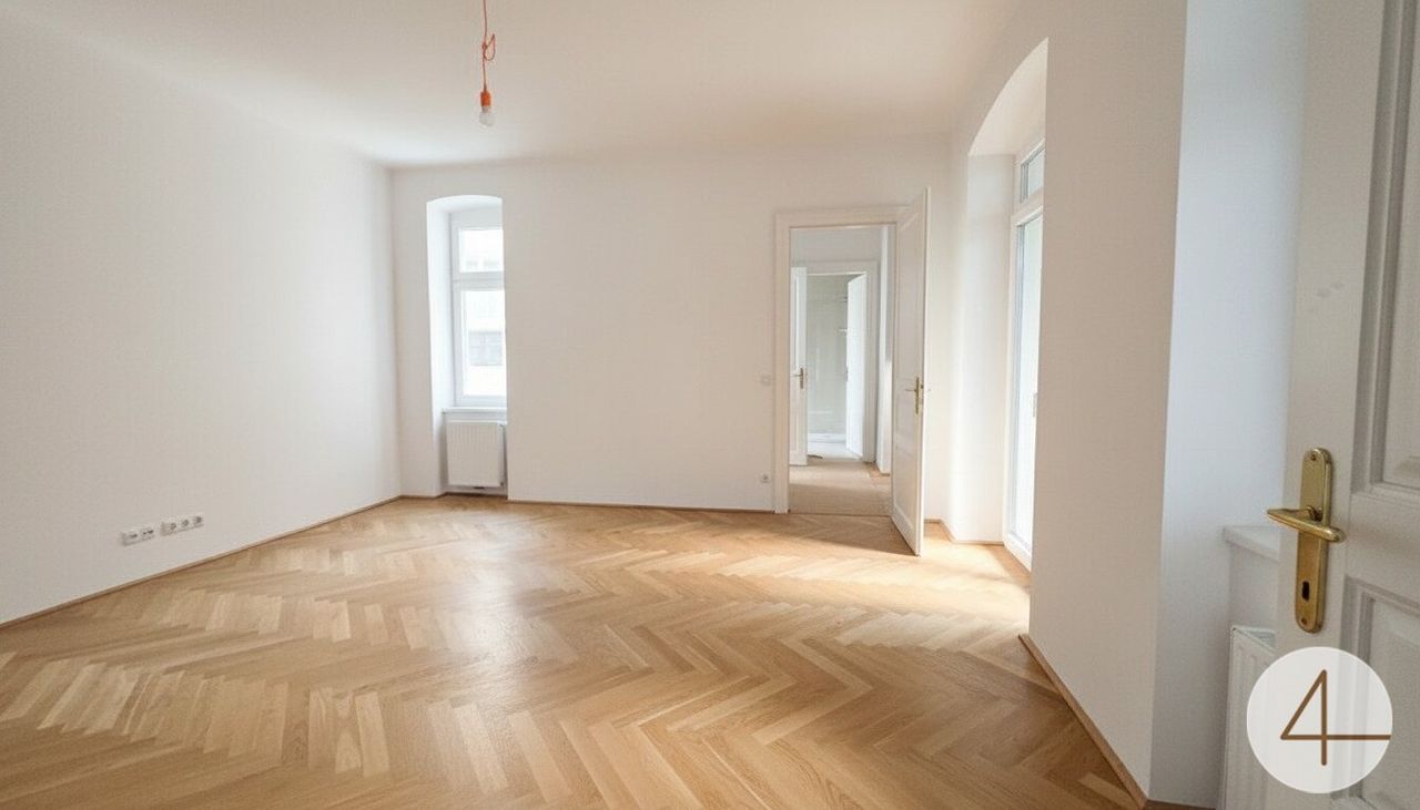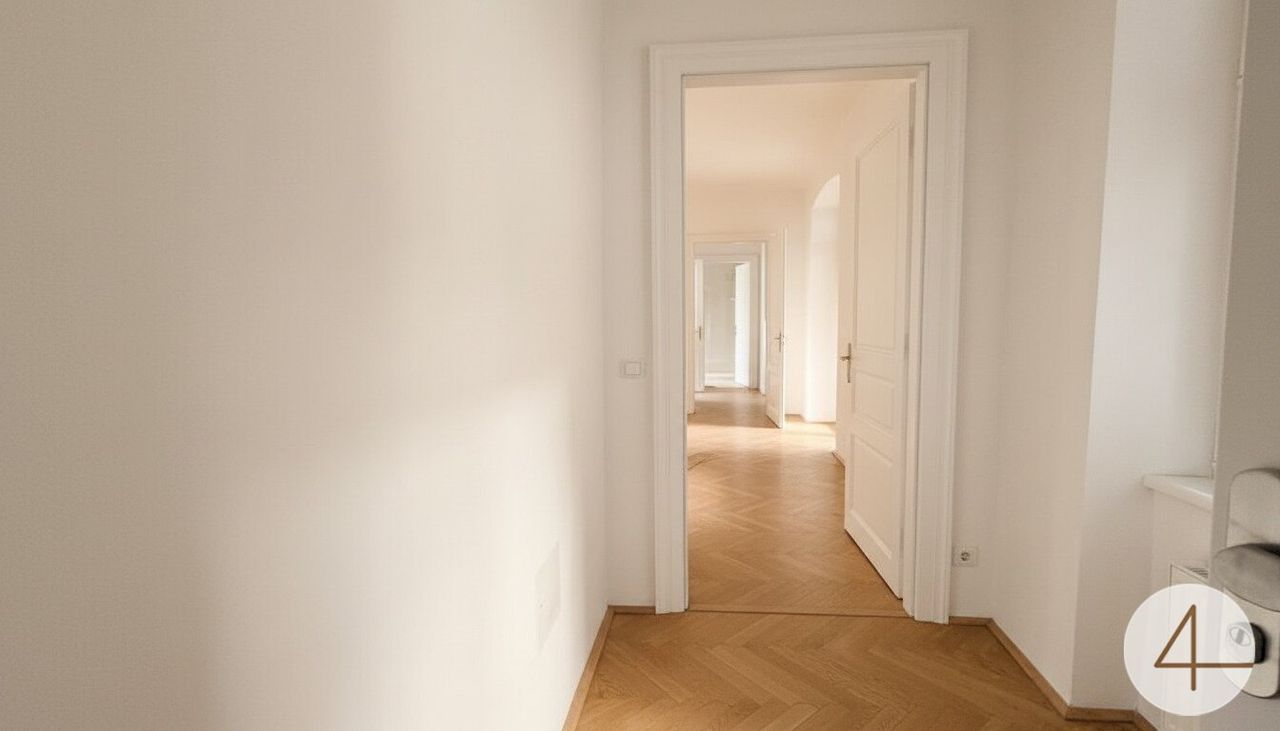 Im Zuge der Sanierung wurden neue Böden und neue Fenster eingebaut, wodurch ein modernes Wohngefühl und gute Energieeffizienz entstehen.