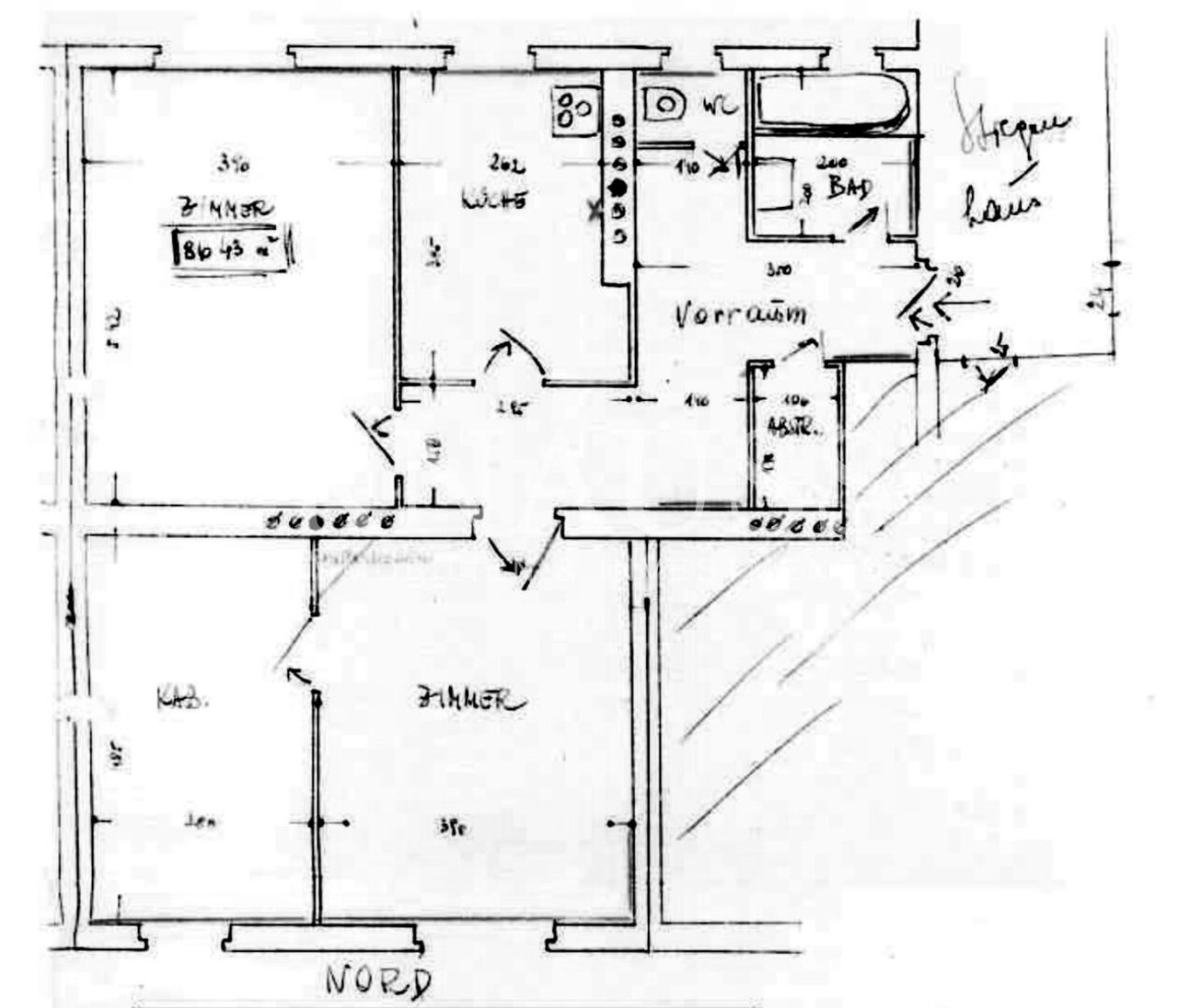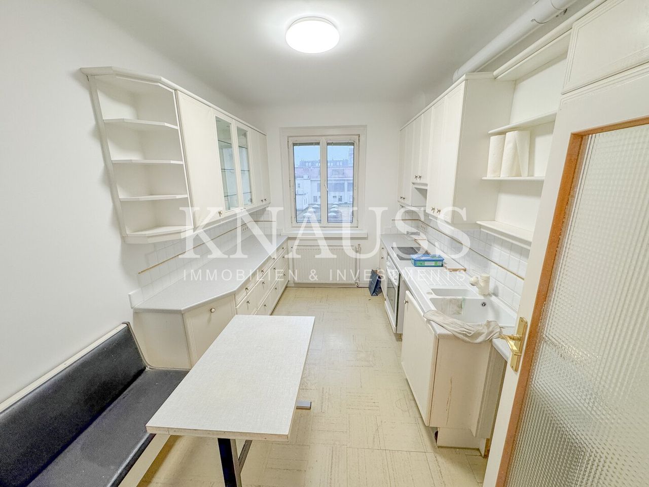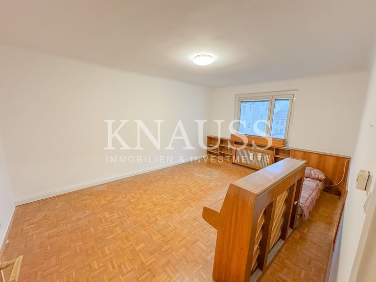 Die Wohnung ist sanierungsbedürftig und bietet entsprechendes Wertsteigerungs- und Anpassungspotenzial. Der Grundriss umfasst drei Zimmer, sowie eine separate Küche.