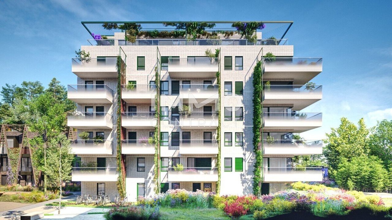 An der Fassade rankt sich üppiges Grün über die insgesamt sieben Geschosse bis zum Dach – auf dem als Abschluss ein Kräutergarten nach Hildegard von Bingen wartet. Leuchtbänder an der Fassade, gemeinsam mit indirekter Beleuchtung an der Unterseite der Balkone, sorgen für magische Lichtstimmungen. Im Aufzug begeistert eine grüne Mooswand hinter Glas. Die Wohnungen verfügen über ein effizientes Heiz- und Temperierungssystem mit Betonkernaktivierung und gelegentlicher Fußbodentemperierung. Es passt sich automatisch den Wetterbedingungen an und wird zentral gesteuert.