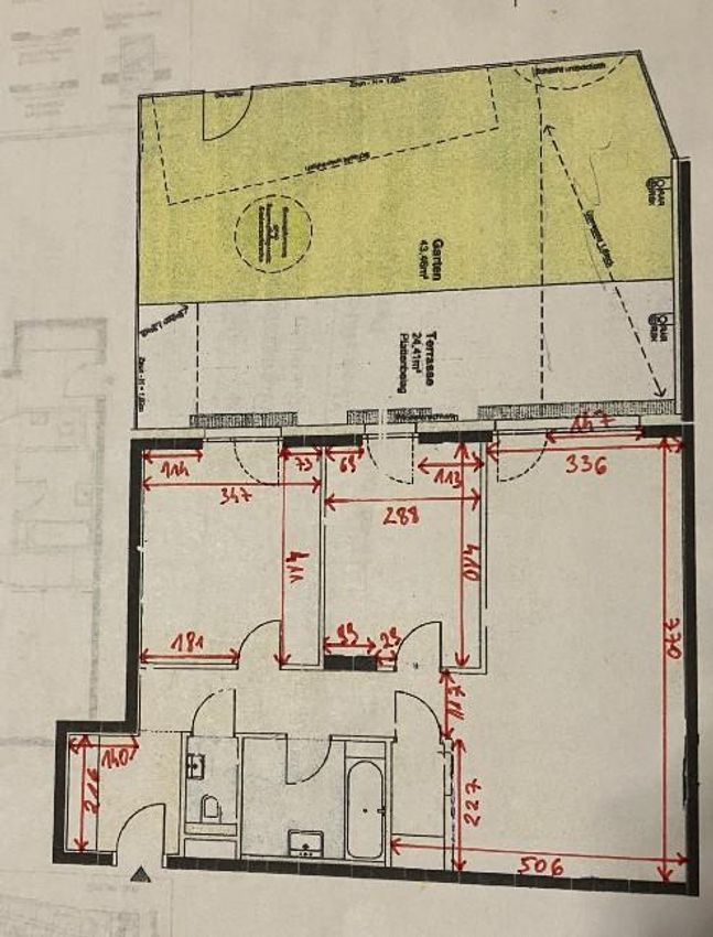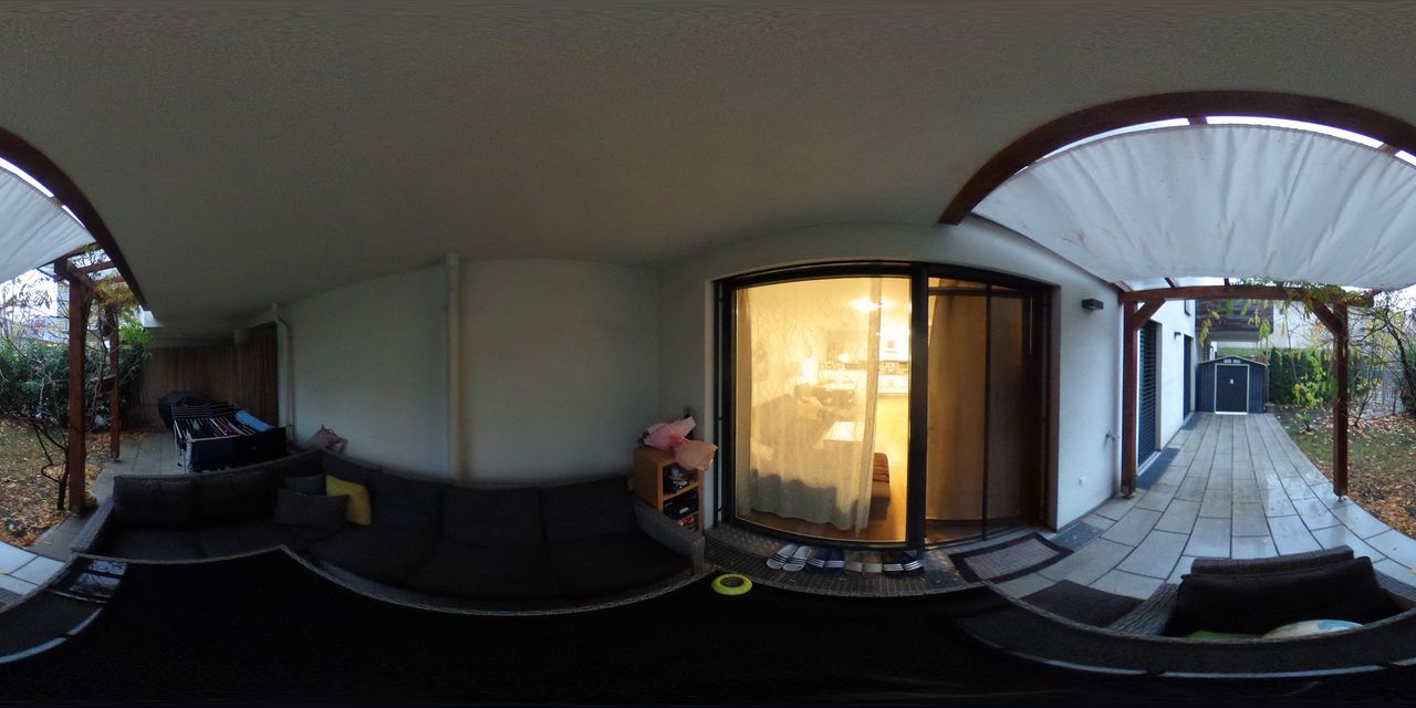 Die Wohnung selbst wird dann durch den Garderobenraum und einem langen Flur betreten. Linksseitig und zum Garten, jeweils durch Terrassentüren zugänglich, orientiert befinden sich die beiden Schlafzimmer bzw. Kinderzimmer. Rechtsseitig sind Toilette, Bad mit Wanne und Waschmaschinenanschluss und Handtuschtrockner sowie Schrankraum angeordnet. Es folgt der offene Wohnbereich mit vollständig mit modernen Geräten (Induktionsherd) ausgestattet Küche, ein Essplatz für 4 Personen und das Wohnzimmer, gemütlich und überschaubar mit Ausgang zur teilweise überdachten somit regensicheren Terrasse, offene Terrasse (24 m²), Gartenhütte, Wiese und gepflasterter Weg (ca. 41 m²) zum übrigen Innenhof der Wohnhausanlage. Die Wohnung wird durch Fernwärme und Fußbodenheizung erwärmt, alle Böden sind mit Echtholzparketten belegt, nur Bad und WC sind verfliest. Es besteht eine Wohnraum Be- und Entlüftung. Baujahr des Hauses 2018. Im Haus besteht eine Glasfaserleitung, in der Wohnung ein SAT-TV und Internet Kabel in jedes Zimmer, Anschluss an den W-LAN-Router. Es besteht ein 380 und 230 V-Anschluss in der Wohnung.