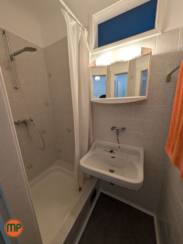 Diese attraktive 1-Zimmer-Wohnung besticht durch eine sehr effiziente Raumaufteilung und ein angenehmes Wohngefühl. Der Wohnraum ist mit Teppichfliesen ausgelegt, die für eine besonders gemütliche Atmosphäre sorgen, und verfügt über eine kompakte Teeküche, ideal für den täglichen Bedarf. Das Badezimmer mit Dusche und das WC sind getrennt angeordnet – ein praktischer Vorteil für den Alltag.