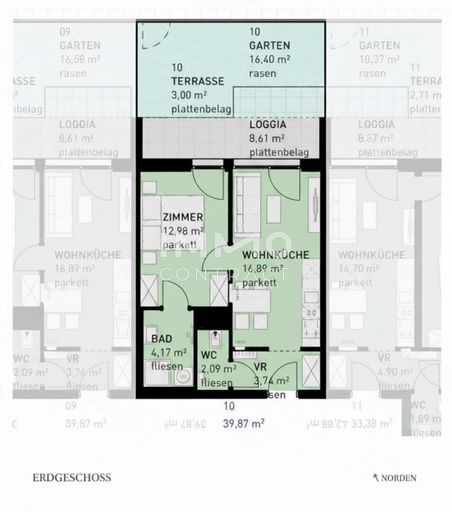 - Jede Wohnung mit privater Freifläche (Loggia, Balkon, Terrasse, Eigengarten)