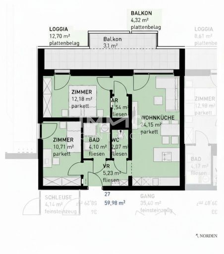 - Jede Wohnung mit privater Freifläche (Loggia, Balkon, Terrasse, Eigengarten)