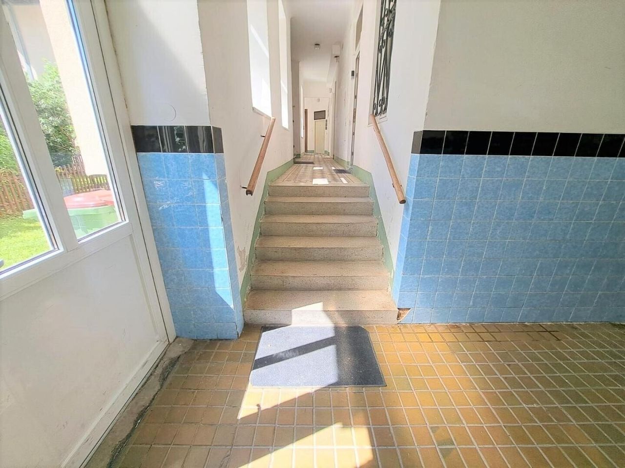 Die im EG gelegene Wohnung ist über 5 Treppen vom Stiegenhauseingang erreichbar, liegt also nicht direkt im Erdgeschoss.