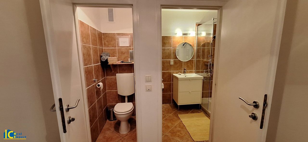 Badezimmer und WC sind getrennt zu begehen, vom Vorraum aus ist ein weiterer Abstellraum, der derzeit als begehbare Garderobe möbliert ist vorhanden.