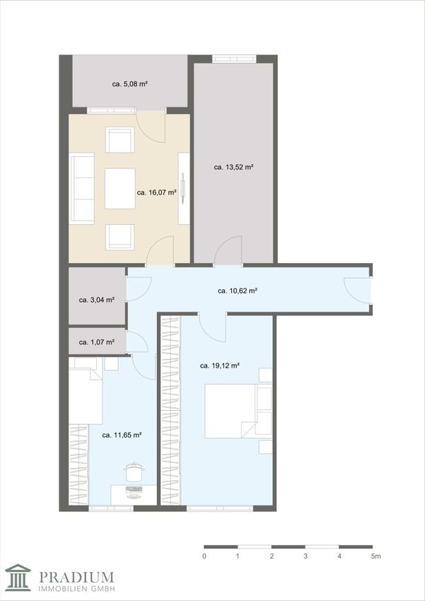 Die Raumaufteilung ist zentral begehbar und bietet dadurch eine besonders flexible Nutzung. Die Wohnung eignet sich ideal für Familien, aber auch hervorragend als Wohngemeinschaft. Durch die durchdachte Raumstruktur ist eine Nutzung als 3er-WG problemlos möglich, im Extremfall könnte sogar eine 4er-WG umgesetzt werden. Dadurch bietet sich die...
