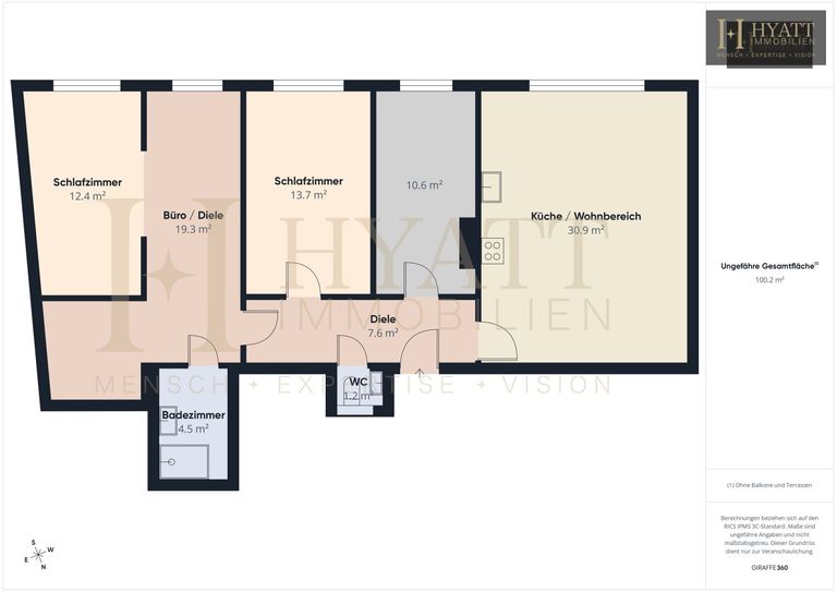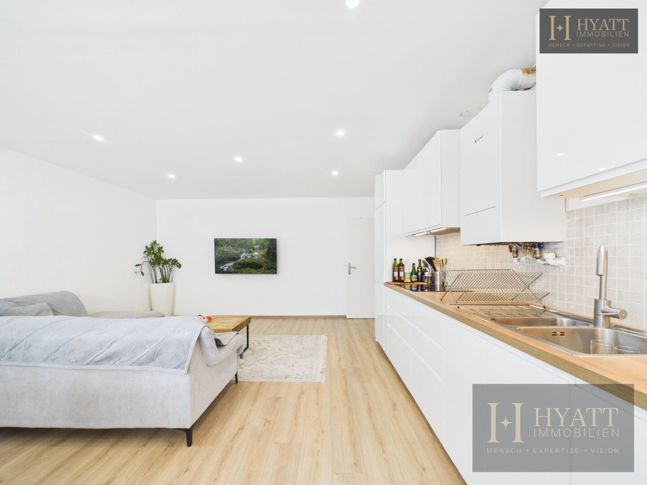 Das Herzstück der Wohnung bildet der großzügige Wohn- und Küchenbereich mit rund 30,9 m², der ausreichend Platz für einen gemütlichen Wohn- und Essbereich bietet.