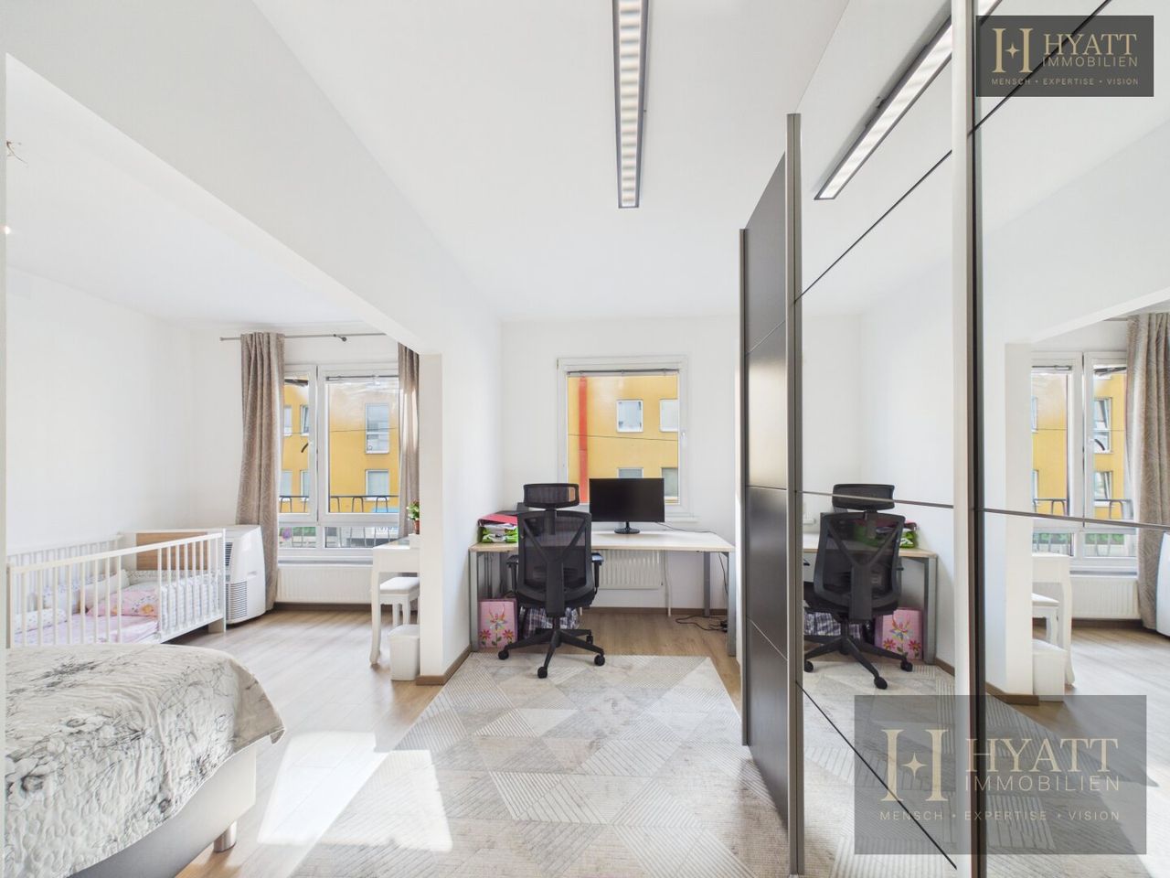 Darüber hinaus verfügt die Wohnung über mehrere gut geschnittene Zimmer, die sich ideal als Schlafzimmer, Kinderzimmer oder Homeoffice nutzen lassen. Die Wohnung bietet somit flexible Nutzungsmöglichkeiten und eignet sich sowohl für Familien als auch für Paare oder Wohngemeinschaften.