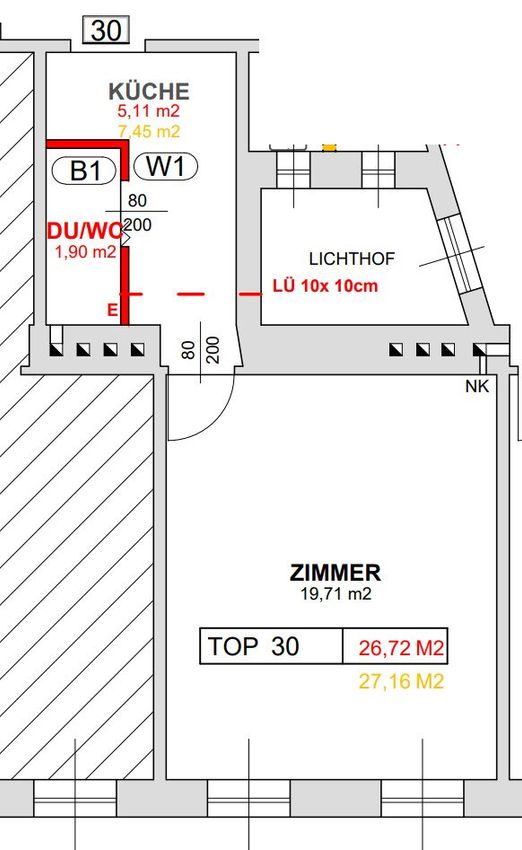 Ca. 27 m², Altbau, 3. Etage