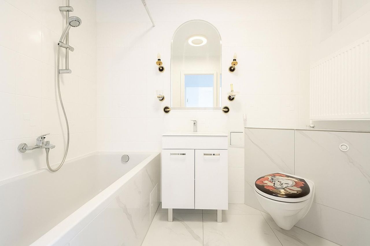 Helle Räume, neue Fliesen, eine moderne Einbauküche und ein geschmackvolles Badezimmer mit WC sorgen für ein angenehmes Wohngefühl.