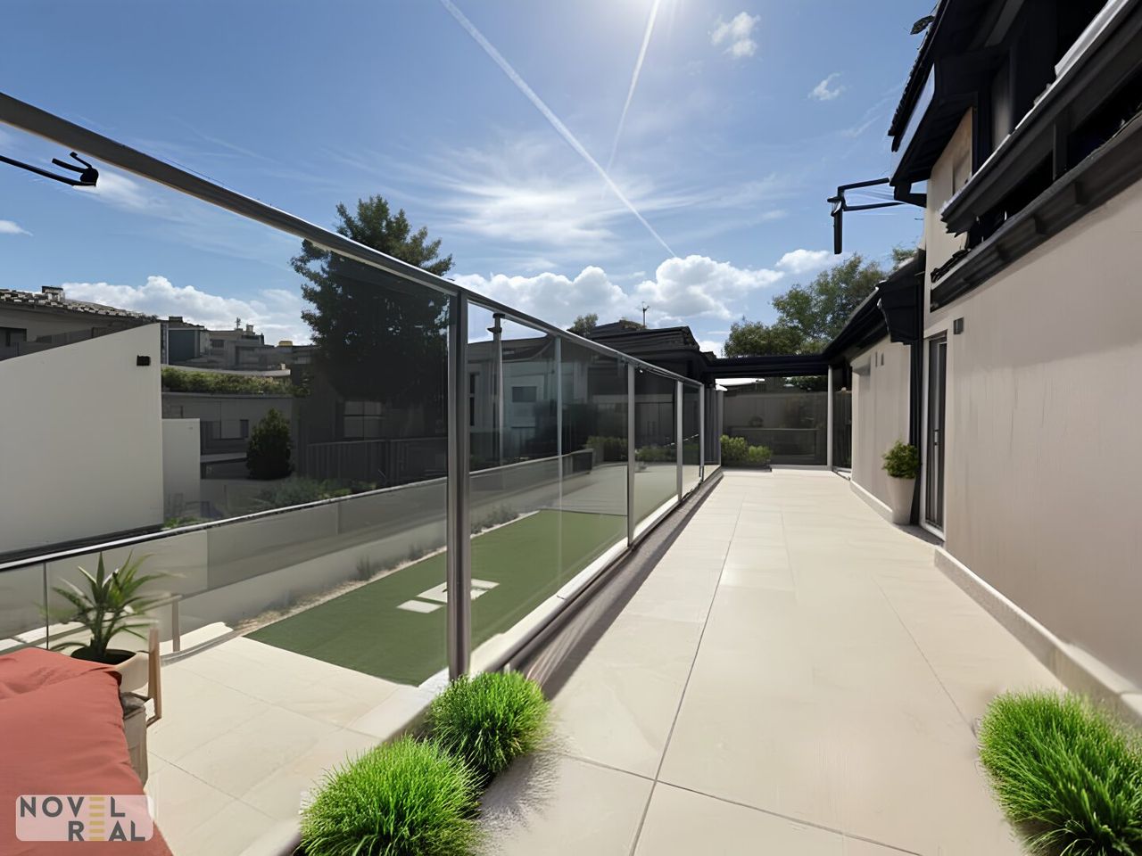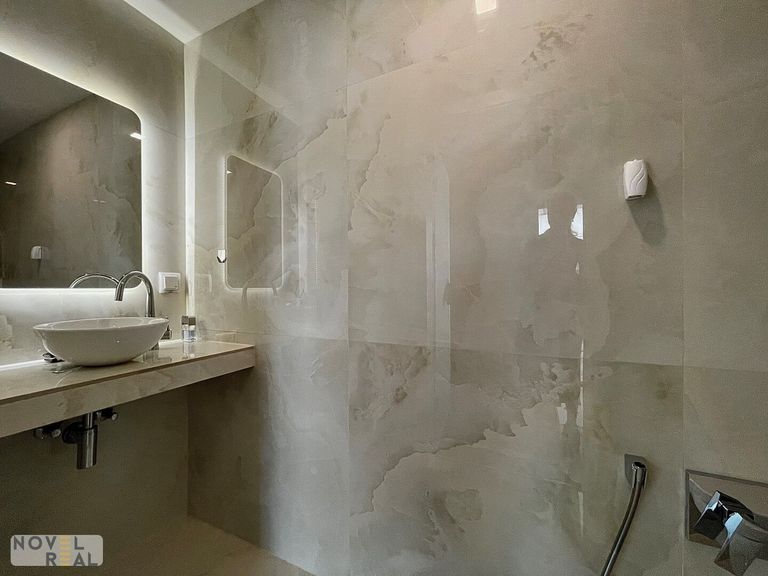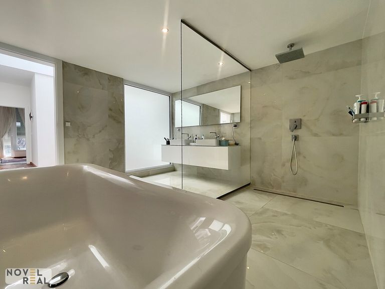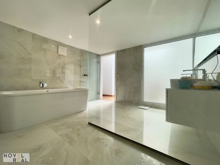 - Parkettboden, Klimaanlage, elektrische Außenjalousien, 3-fach verglaste Kunststofffenster, Edelstahl- und Glasgeländer, Sicherheitseingangstür.