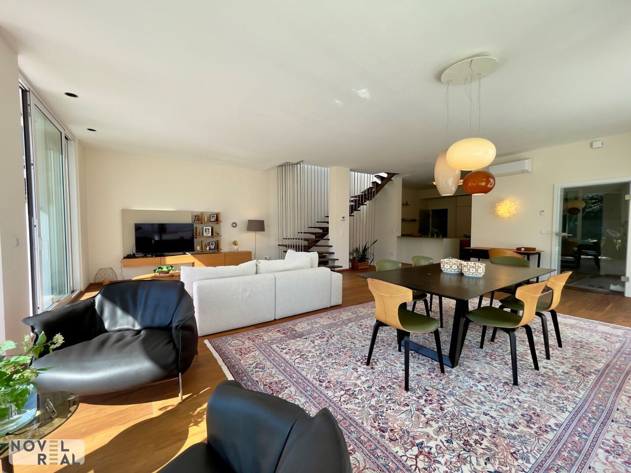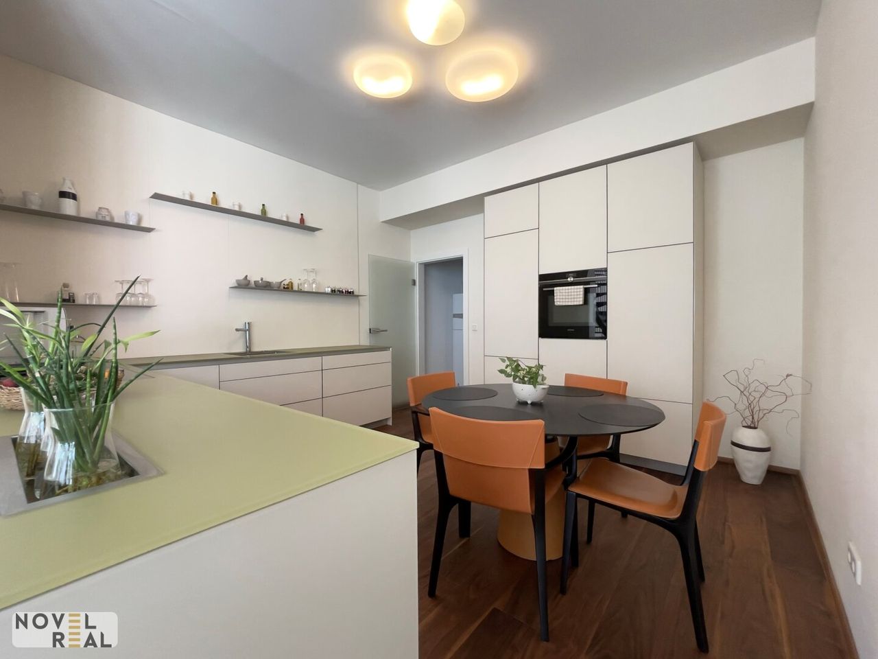 Die ca. 183 m² große Wohnfläche verteilt sich auf zwei Etagen und bietet mit vier geräumigen Zimmern viel Platz zum Leben und Wohlfühlen. Das Erdgeschoss begeistert mit einer offenen Wohnessküche von ca. 67 m², die mit hochwertigen Geräten von Gaggenau und Siemens ausgestattet ist. Der elegante Parkettboden, die klimatisierten Wohnräume und die elektrischen Außenjalousien unterstreichen den hohen Wohnkomfort.